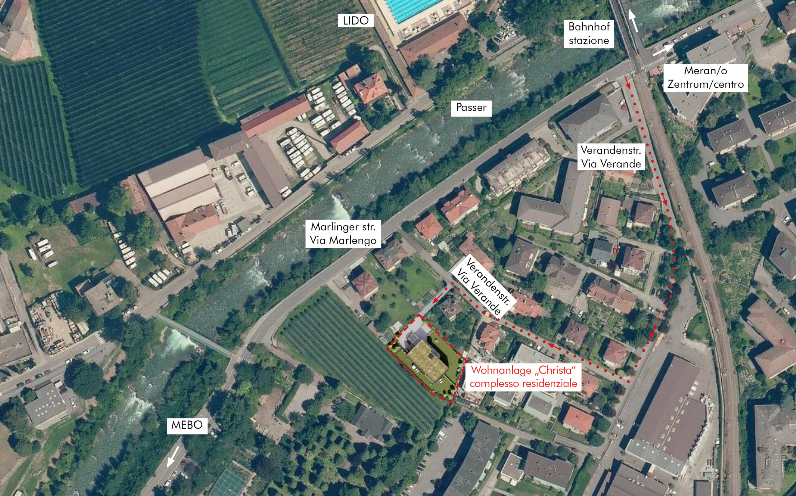 In una posizione soleggiata con vista sul Monte San Vigilio e sul Gruppo di Tessa, oltre che sulla circostante valle dell’Adige, l’impresa immobiliare Rohrer Immobilien sta realizzando il complesso residenziale “Christa”. La passeggiata, le terme, il centro storico di Merano e i portici con i loro numerosi negozi e ristoranti sono tutti raggiungibili a piedi.