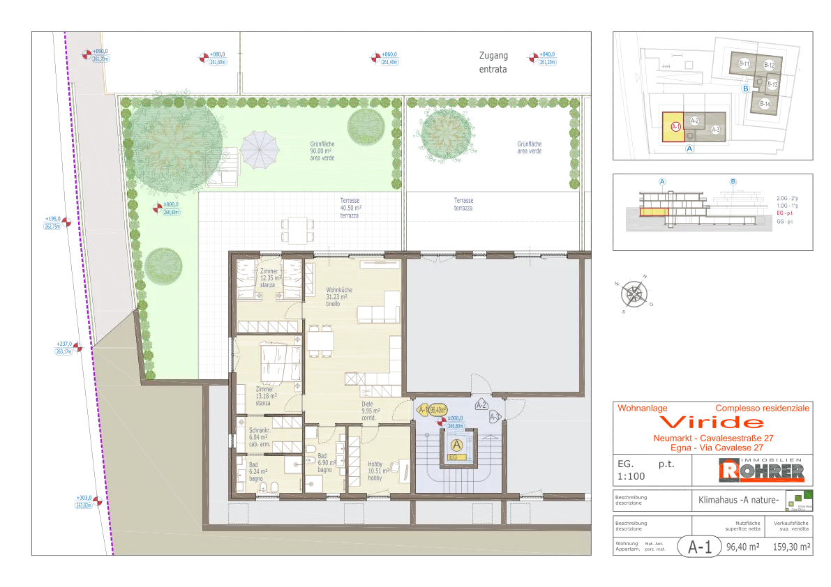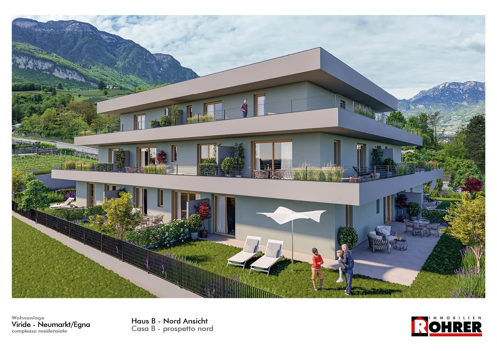 In traumhafter sonniger Panoramalage mit freiem Ausblick ins Etschtal, realisiert der Bauträger Rohrer Immobilien die Wohnanlage „Viride“, welche im modernen Baustil errichtet wird. Gute Anbindung zu den öffentlichen Verkehrsmitteln und an die Fahrradwege. Auch wegen seiner ruhigen, idyllischen Lage ist Neumarkt zu einem beliebten Wohn- und Ferienort geworden.